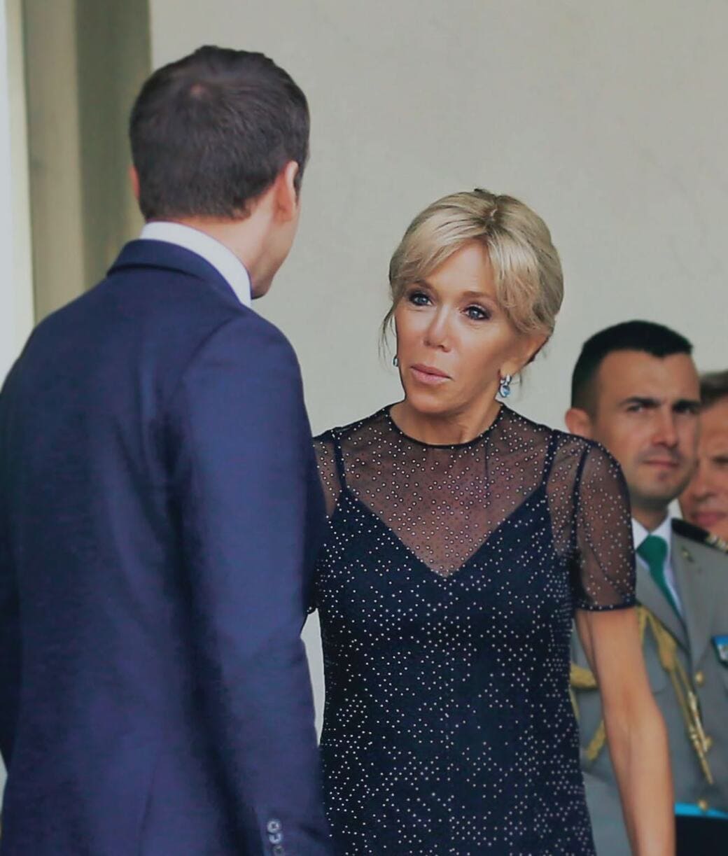 В мае 2025 года вьетнамские СМИ разошлись насчёт видео, где она будто бы «толкнула» Эммануэля по лицу при выходе из самолёта. Макрон заявил, что это всего лишь «игривый жест», и пресс‑служба подтвердила — момент был шутливым .