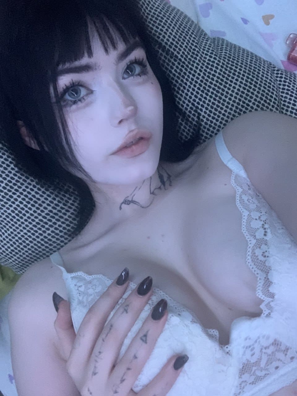 - У неё есть характерный визуальный профиль — черный макияж, крупный план, эмо‑готы и струящиеся волосы;